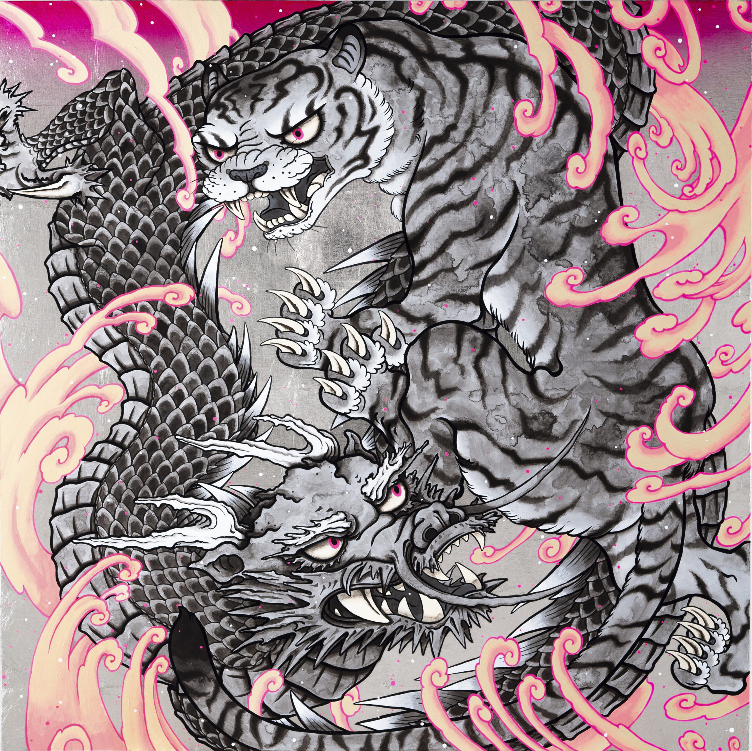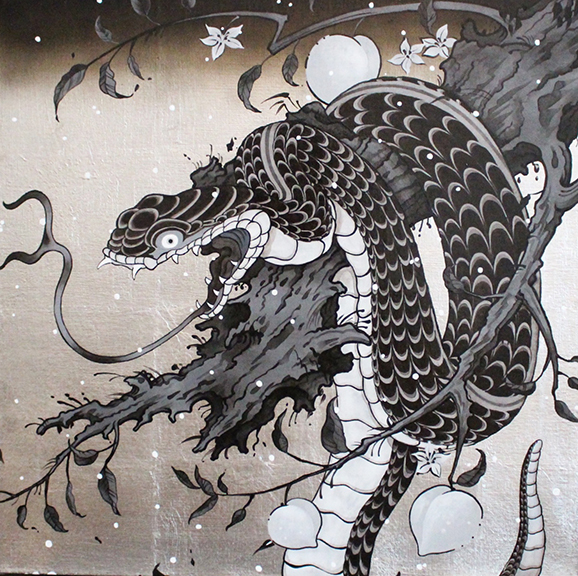 東洋圏で縁起物として用いられる動物をモチーフに現代における江戸絵画を描いています。