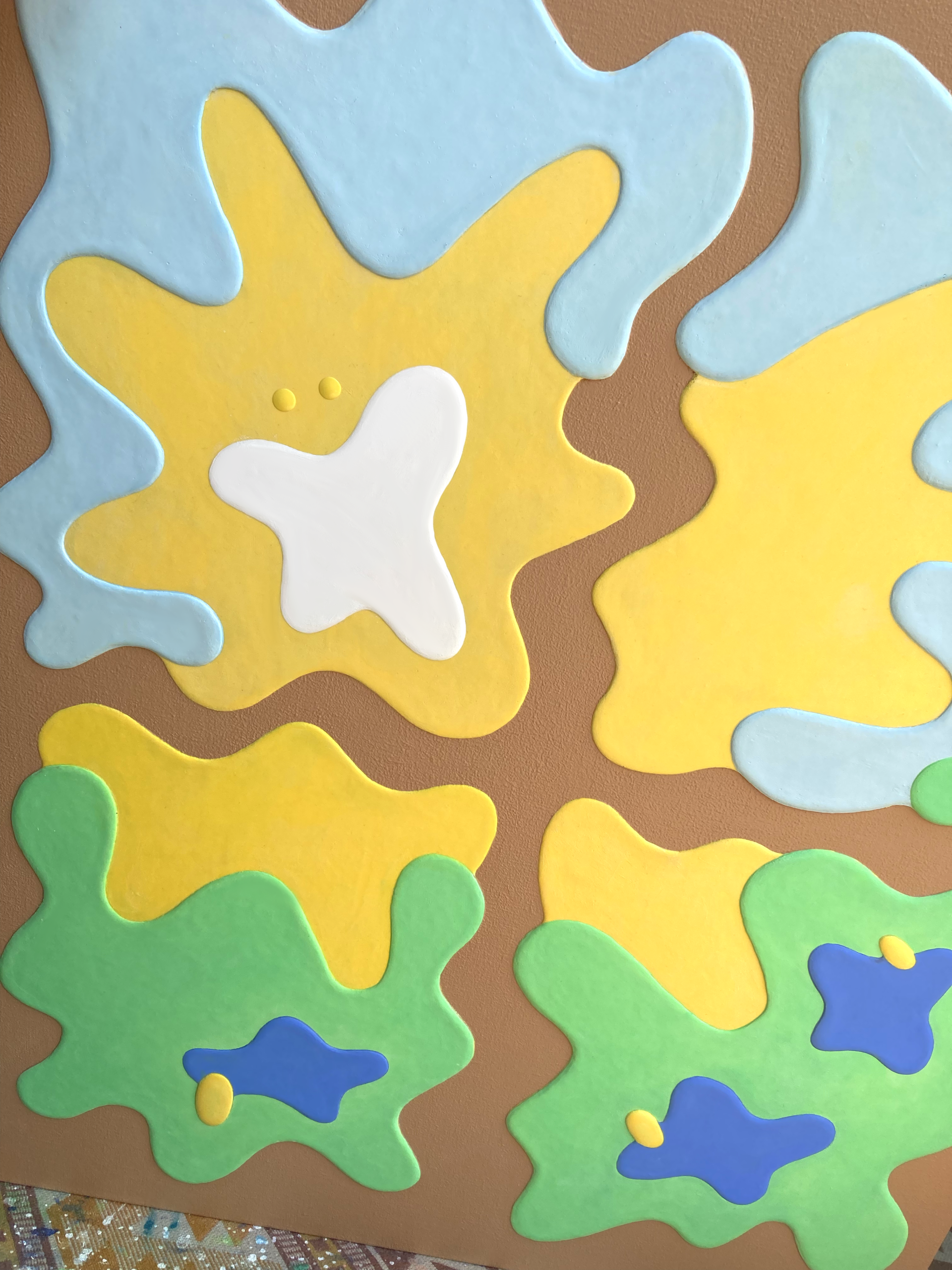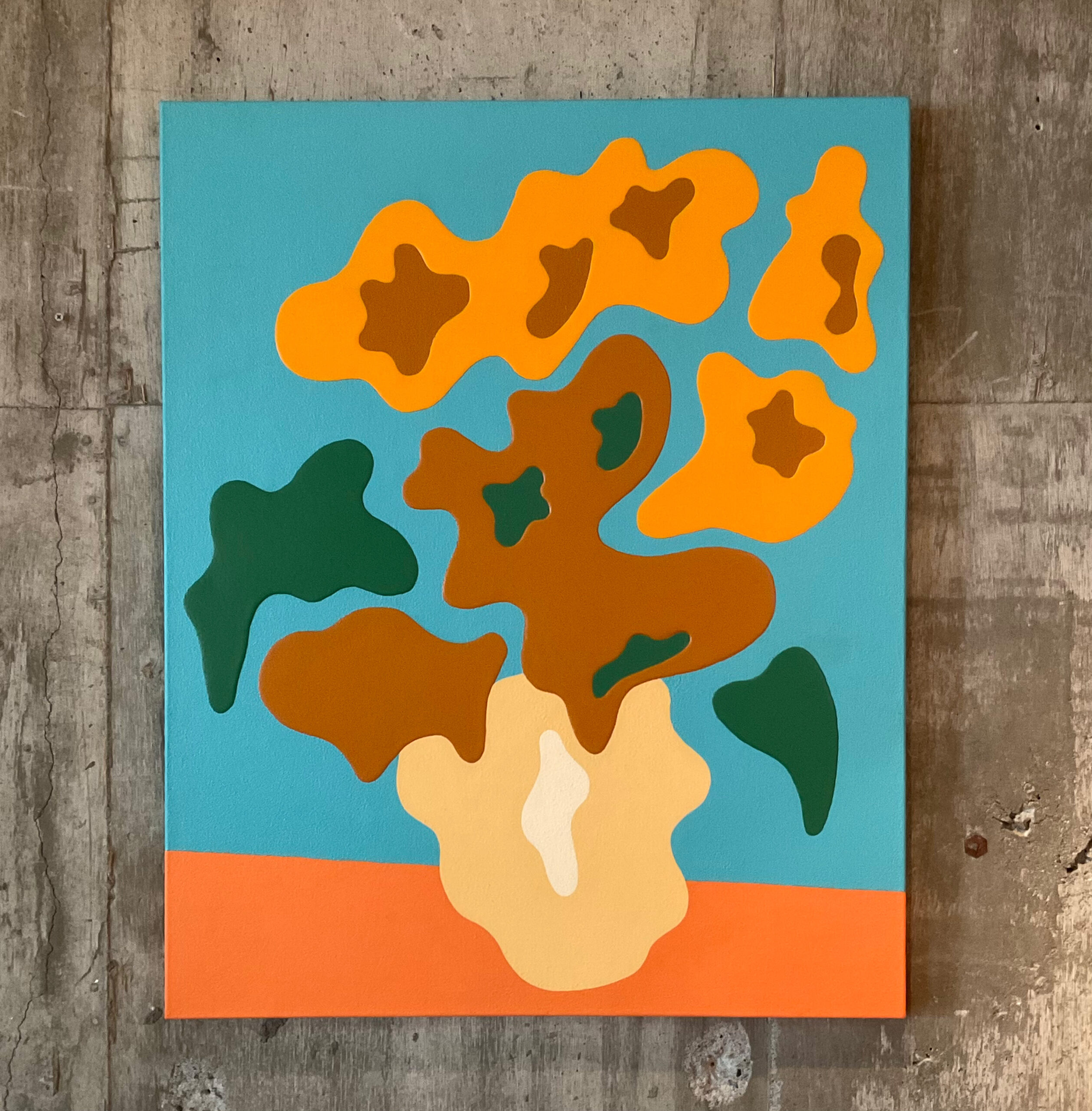 アクリル絵具を幾重にも重ね、